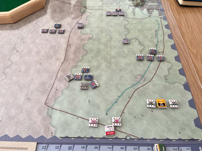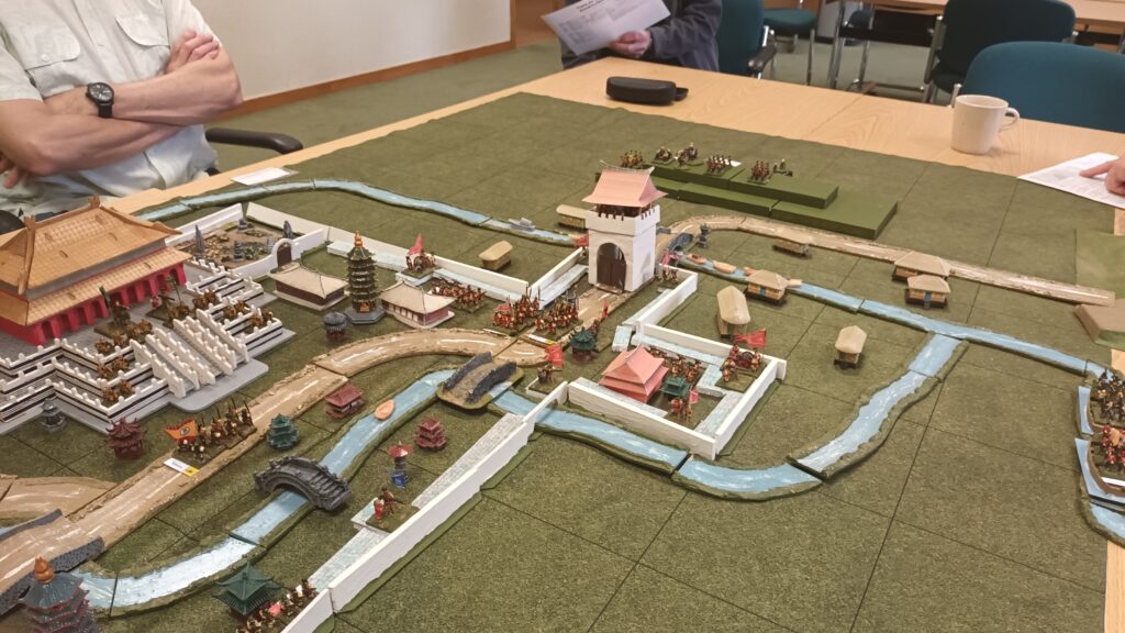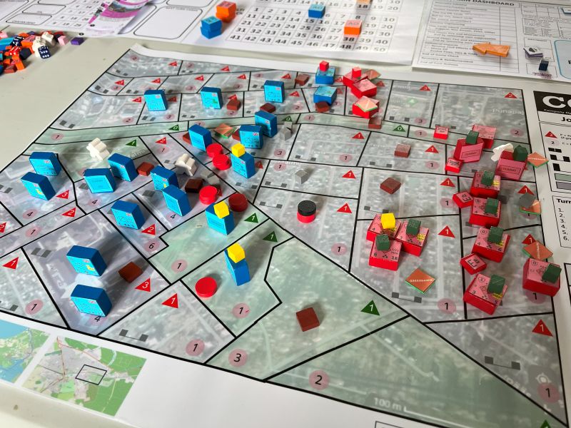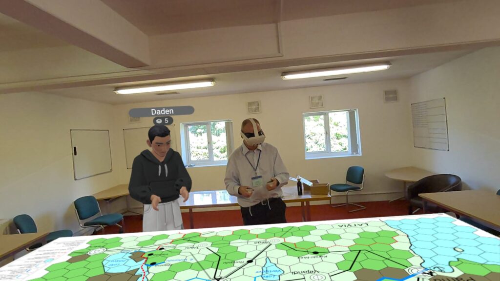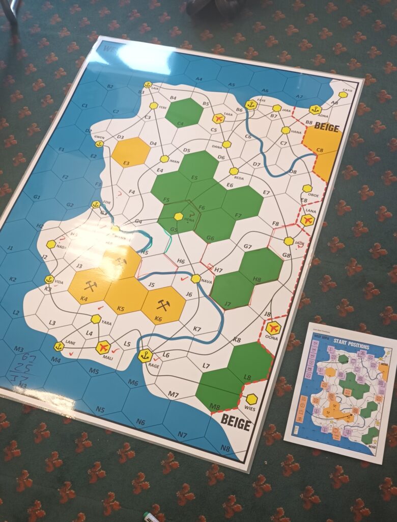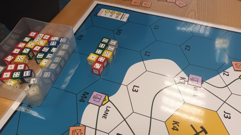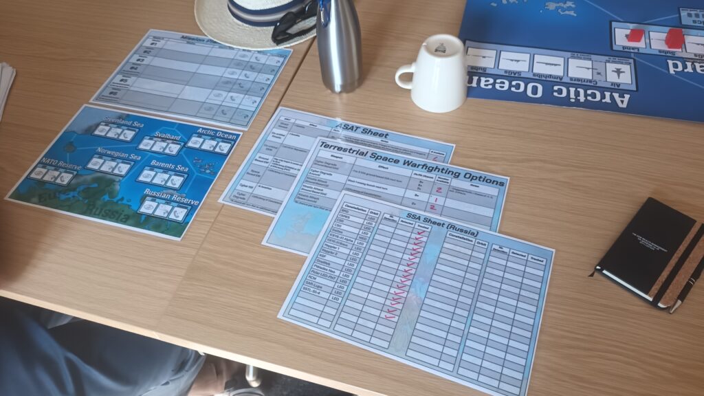 On Friday there is traditionally a plenary game to act as an ice-breaker. This time it was called Apocalypse Dilemmas and was (topically) World War 3 (worrying given how prescient last year's Papal Conclave was). The game was designed by and inspired by SPI's classic boardgame of the same name. Attendees played different command and staff positions from NATO and the Warsaw Pact and each team was faced with a variety of global incidents (typically military) to which they had to decide whether they would deal with them by conventional or nuclear means. As it was everyone kept their head and no nuclear weapons were used by either side. Quite a sobering game. After dinner there were half a dozen smaller and more informal/fun games run, some pictures of those below.