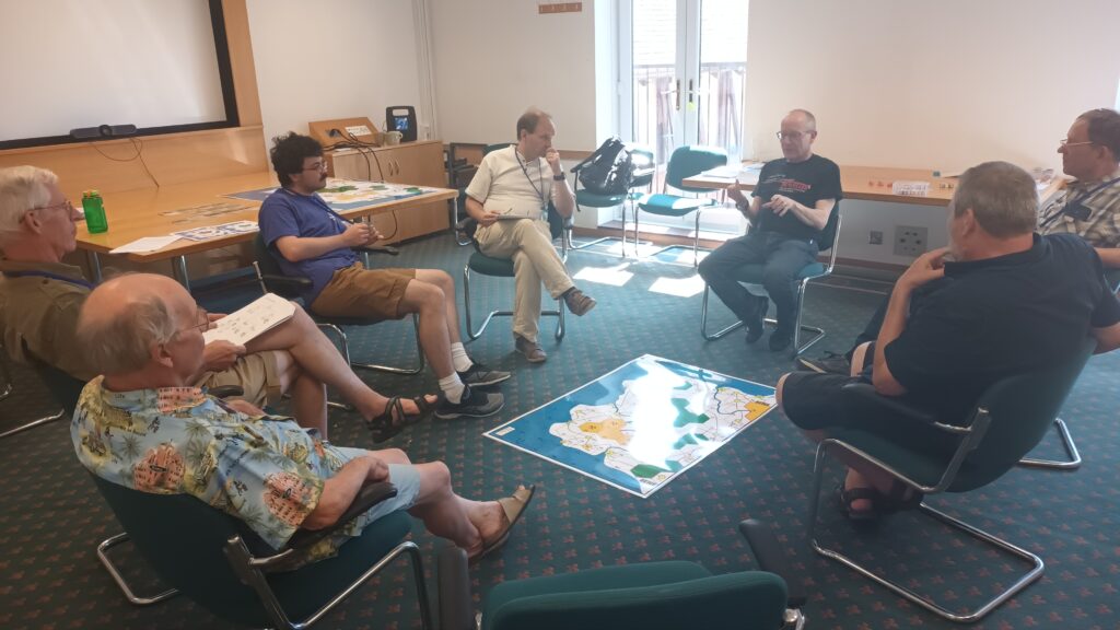 Games usually only run on Sunday morning, so that we can hold the AGM immediately after lunch and people can make a reasonable getaway. Eight games were played, and the AGM managed to finish before its scheduled start-time due to our ever efficient Secretary and Chair.